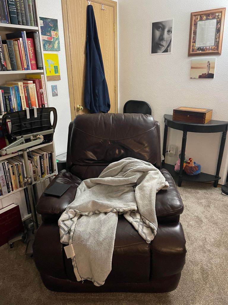 After I got off work I took the dog for a walk. My daughter was at a friend’s house, so after my walk I had about an hour before I needed to start making dinner. I decided to take a nap. I grabbed a blanket and sat in my overstuffed recliner in my study. I put on my noise-cancelling headphones and fell into a deep sleep. This was what I dreamed: